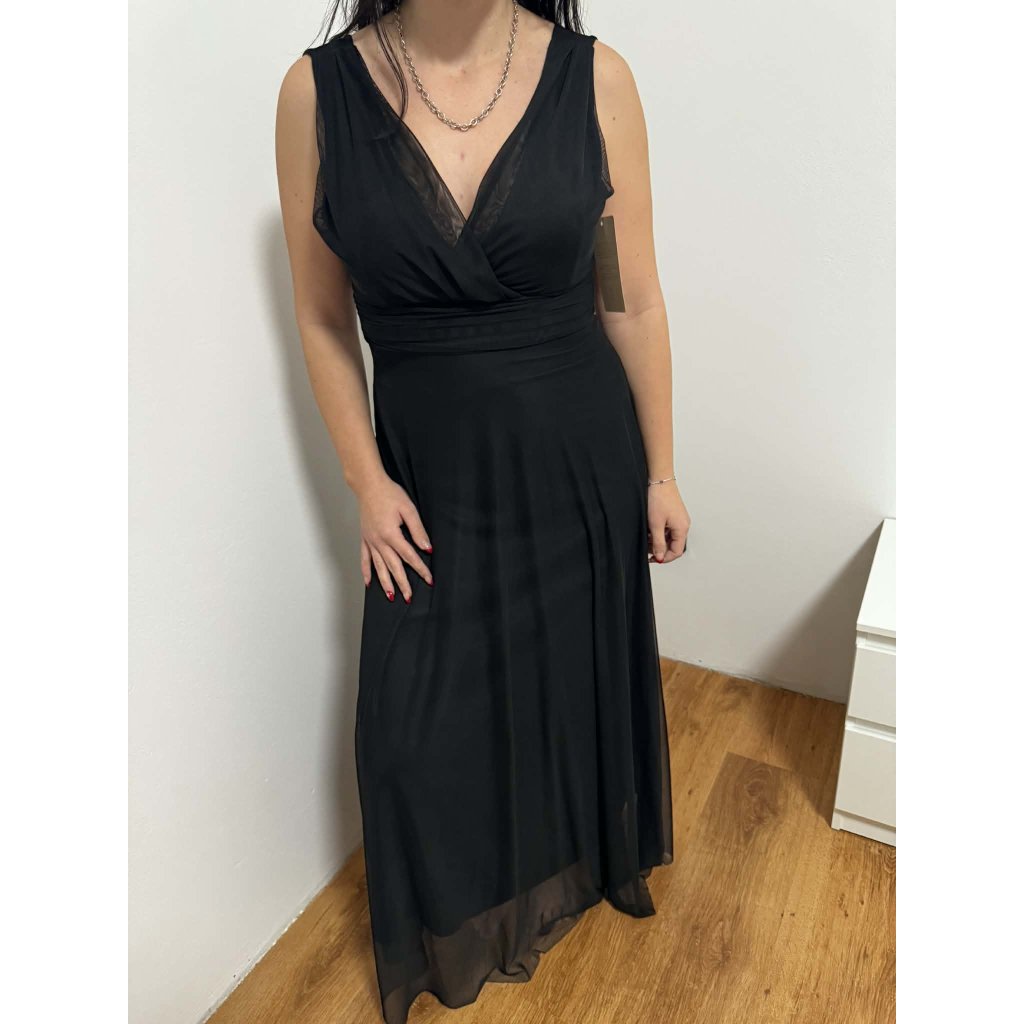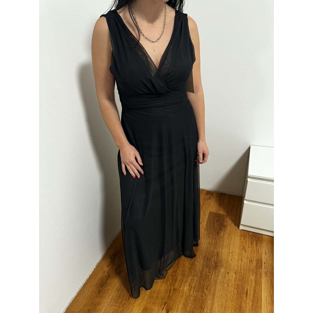 Nadčasové černé společenské šaty v elegantním provedení, které působí velmi sofistikovaně a žensky. Díky splývavému materiálu a promyšlenému střihu krásně sedí na postavě a jsou ideální volbou pro slavnostní příležitosti.
