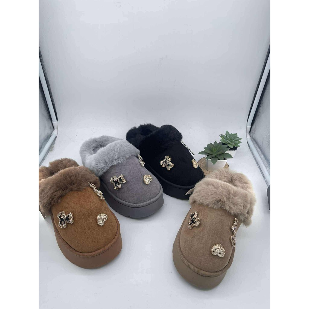 Stylové a maximálně pohodlné hřejivé pantofle, které si zamilujete během chladných dnů 🤍. Měkký semišový vzhled doplněný jemným kožíškem uvnitř i kolem lemu zajistí příjemné teplo a komfort při každém kroku. Elegantní zdobení dodává pantoflím luxusní vzhled, díky kterému jsou nejen praktické, ale i krásné.Pantofle mají pevnější podrážku, takže jsou vhodné nejen na domácí nošení, ale i na rychlé vyběhnutí ven. Skvěle zahřejí nohy a zároveň vypadají stylově.