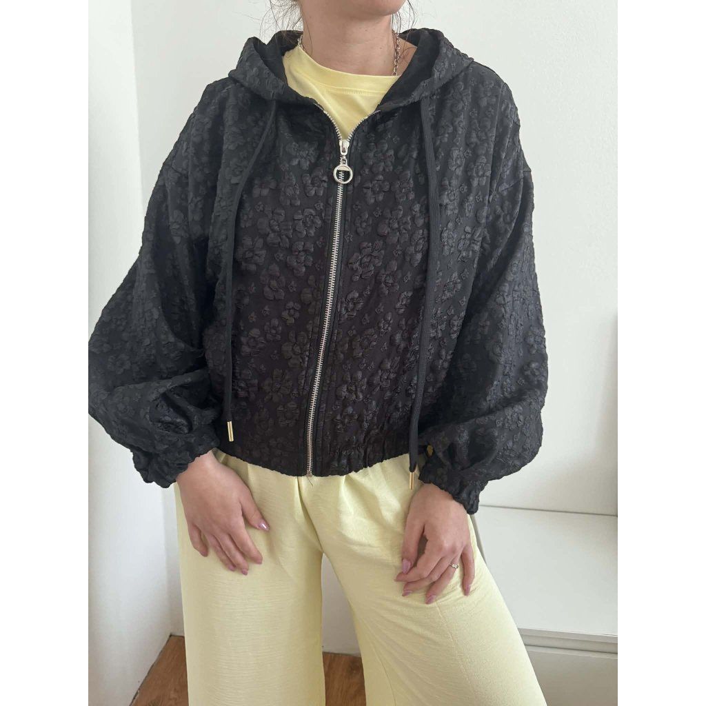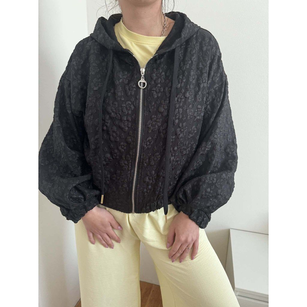 Lehoučká dámská bundička s kapucí, která si vás získá na první dotek. Jemně strukturovaný materiál s plastickým vzorem působí elegantně a zároveň hravě. Volnější střih s pružným lemem a rukávy zajišťuje pohodlí při nošení, zatímco zapínání na zip a praktická kapuce dodávají na funkčnosti.Bundička je ideální jako stylový doplněk pro jarní a letní dny – snadno ji zkombinujete s šaty, kalhotami i sportovně laděnými outfity. Díky lehkosti ji můžete mít vždy po ruce, ať už vyrážíte do města nebo na procházku.