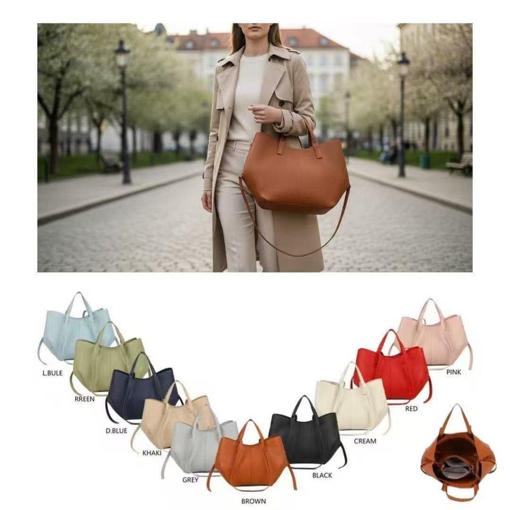 Tato luxusní kabelka je dokonalým spojením nadčasového designu, praktičnosti a elegance. Díky svému čistému tvaru a kvalitnímu zpracování se hodí jak k elegantním outfitům, tak i ke každodennímu nošení. Prostorný interiér nabízí dostatek místa pro všechny nezbytnosti, takže je ideální do práce, na schůzky i na nákupy.Kabelka má pevná ucha pro pohodlné nošení v ruce a zároveň odnímatelný dlouhý popruh, díky kterému ji můžete nosit i přes rameno nebo crossbody. Kvalitní materiál zajišťuje dlouhou životnost a luxusní vzhled.