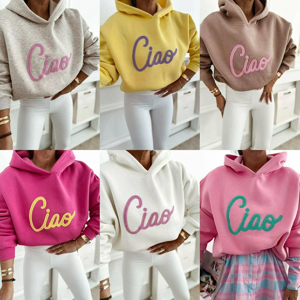 Dámská mikina Ciao – must have kousek 💕Stylová a pohodlná mikina s kapucí a výrazným nápisem Ciao, která oživí každý outfit. Díky příjemnému materiálu ze 100% bavlny je ideální na každodenní nošení – do města, na volný čas i na cestování.