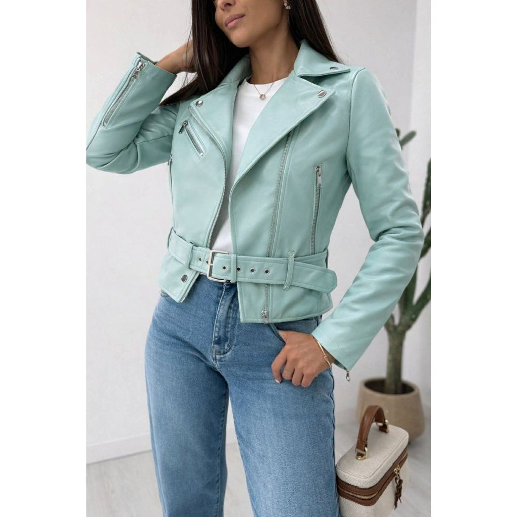 Lehká, svěží a nepřehlédnutelná – mint kožená bunda je ideálním kouskem pro oživení každého outfitu. Skvěle doplní jak ležérní styl s džínami, tak i elegantnější kombinace se šaty. Díky jemnému odstínu působí moderně a zároveň velmi žensky.Bunda je vyrobena z kvalitního, příjemného materiálu, který se pohodlně nosí a přizpůsobí postavě. Má praktické zapínání na zip, stylové detaily a střih, který lichotí siluetě.✨ Vlastnosti: • moderní mint barva• pohodlný střih• zapínání na zip• vhodná na jaro i podzim• snadno kombinovatelný kousekPerfektní volba pro ženy, které chtějí být stylové a zároveň se cítit pohodlně každý den 💚