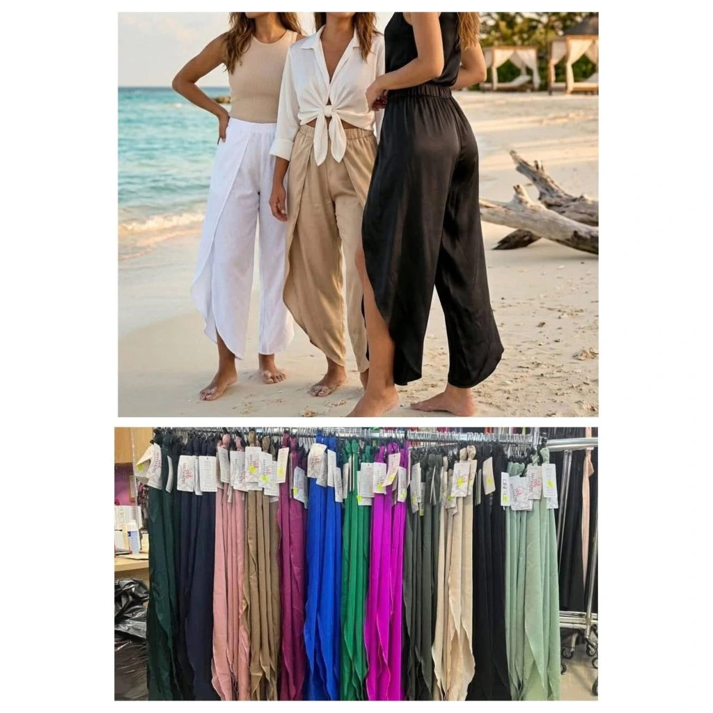 Vzdušné saténové kalhoty, které si zamiluješ na první obléknutí. Jemný, splývavý materiál krásně kopíruje postavu, působí luxusně a zároveň je maximálně pohodlný. Stylový rozparek na nohavici dodává modelu šmrnc a ženskost.Díky pružnému pasu se kalhoty skvěle přizpůsobí postavě a jsou ideální jak na letní dovolenou, tak i do města nebo na večerní outfit. Stačí doplnit topem, košilí nebo plavkami a máš dokonalý look.