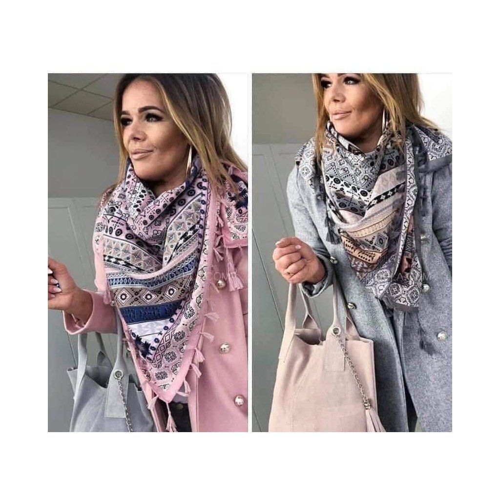 Elegantní a zároveň praktický doplněk, který krásně doladí každý outfit. Dámský šátek zaujme originálním etnickým vzorem a jemnými barevnými kombinacemi, díky kterým se snadno kombinuje s kabáty, saky i svetry. Příjemný, lehký materiál zajišťuje pohodlné nošení během celého dne.Šátek můžete nosit klasicky kolem krku, volně přehozený přes ramena nebo stylově uvázaný jako výrazný módní doplněk. Skvěle se hodí jak na běžné nošení, tak i pro elegantnější příležitosti. Ozdobné detaily dodávají šátku ženský a moderní vzhled.