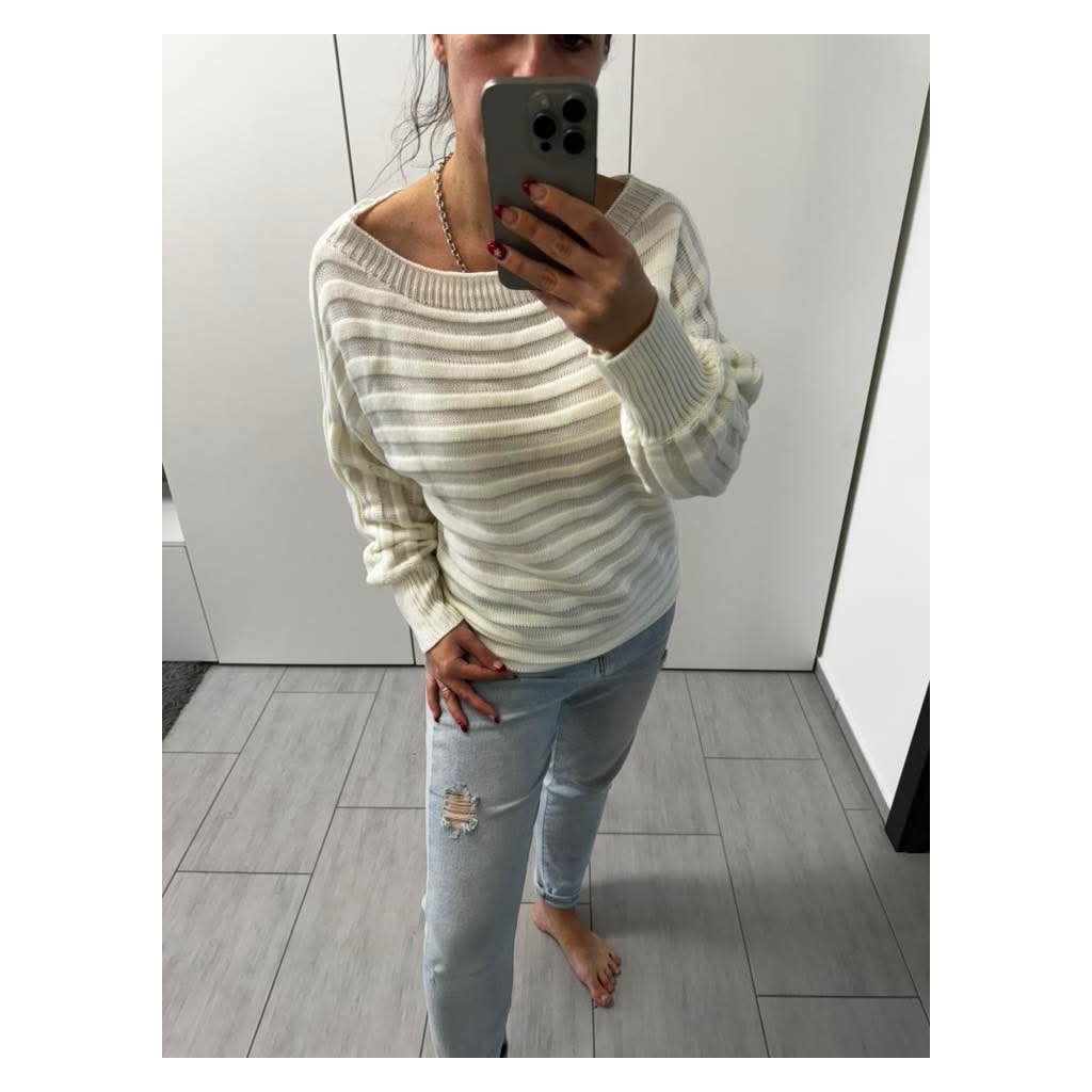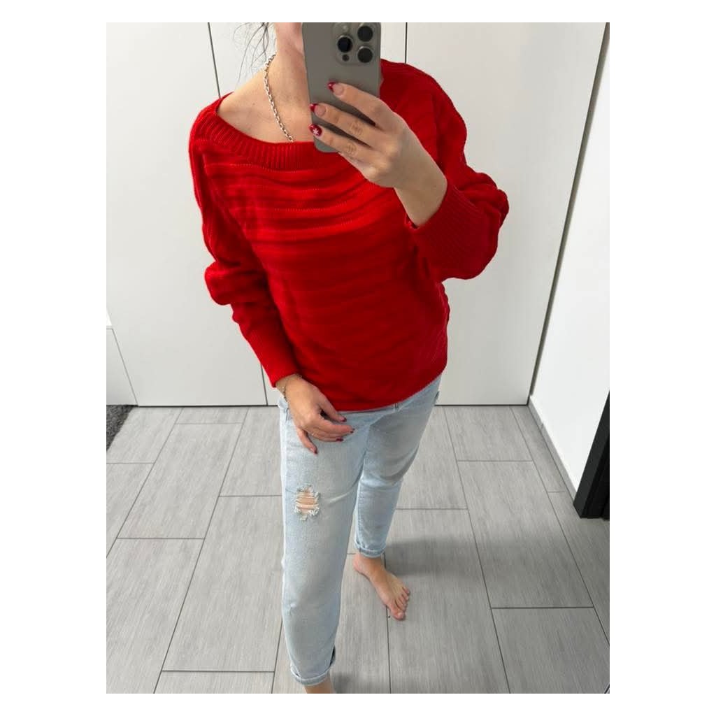Pohodlný svetřík s lodičkovým výstřihemStylový a příjemný svetřík, který krásně sedí a snadno se kombinuje. Jemné žebrování dodává moderní vzhled, volnější střih zajistí pohodlí po celý den. Výstřih lze nosit klasicky nebo lehce spuštěný na rameno.✔️ měkký a příjemný materiál✔️ pohodlný střih✔️ lodičkový výstřih / možnost nosit na jedno rameno✔️ ideální na běžné nošení✔️ snadno kombinovatelný s džínami i sukní
