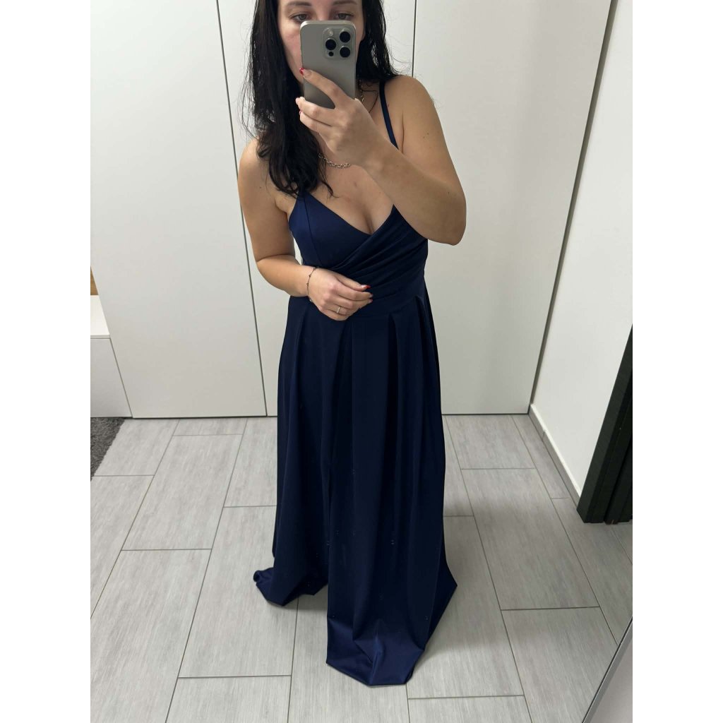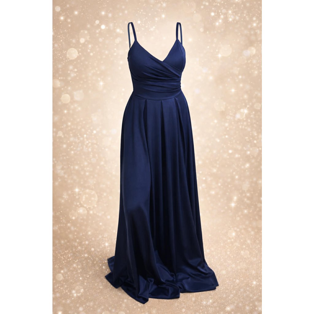 Elegantní dlouhé šaty v nadčasové tmavě modré barvě jsou ideální volbou pro plesy, svatby, večírky i slavnostní události. Jemně řasený živůtek s překládaným efektem krásně zvýrazní dekolt a vytvaruje siluetu. Lehce splývavá sukně dodává šatům ženskost, lehkost a elegantní pohyb při chůzi.Tenká ramínka působí jemně a elegantně, zatímco pohodlný střih zajistí komfort po celý večer. Šaty jsou navrženy tak, aby lichotily postavě a působily luxusně, ale zároveň přirozeně.