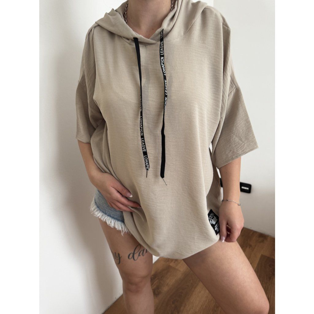 Stylová, pohodlná a maximálně univerzální. Tato oversize tunika/tricko s kapucí je přesně ten kousek, který unosíš každý den – ať už k džínovým kraťasům, legínám nebo jen tak na doma.